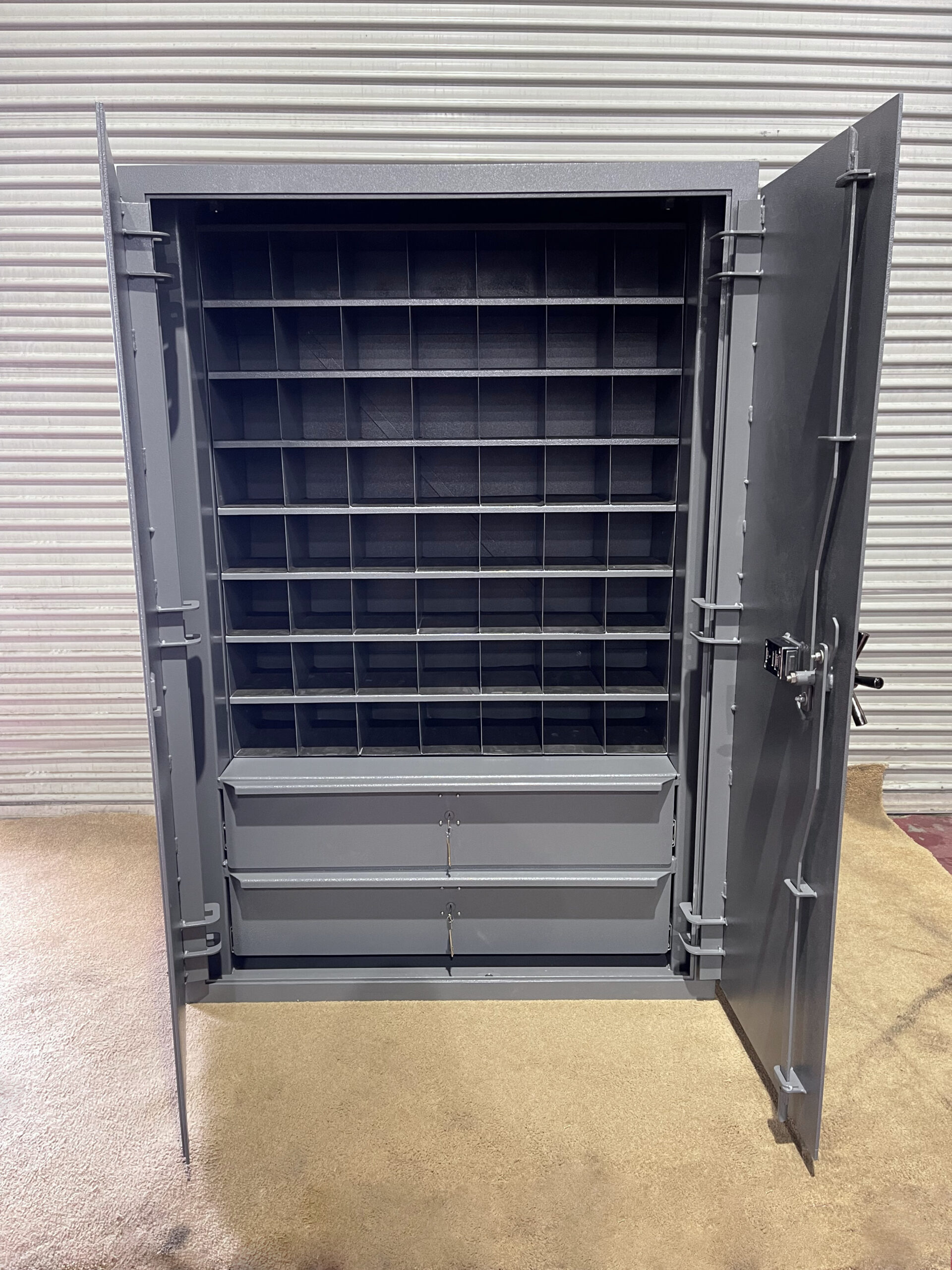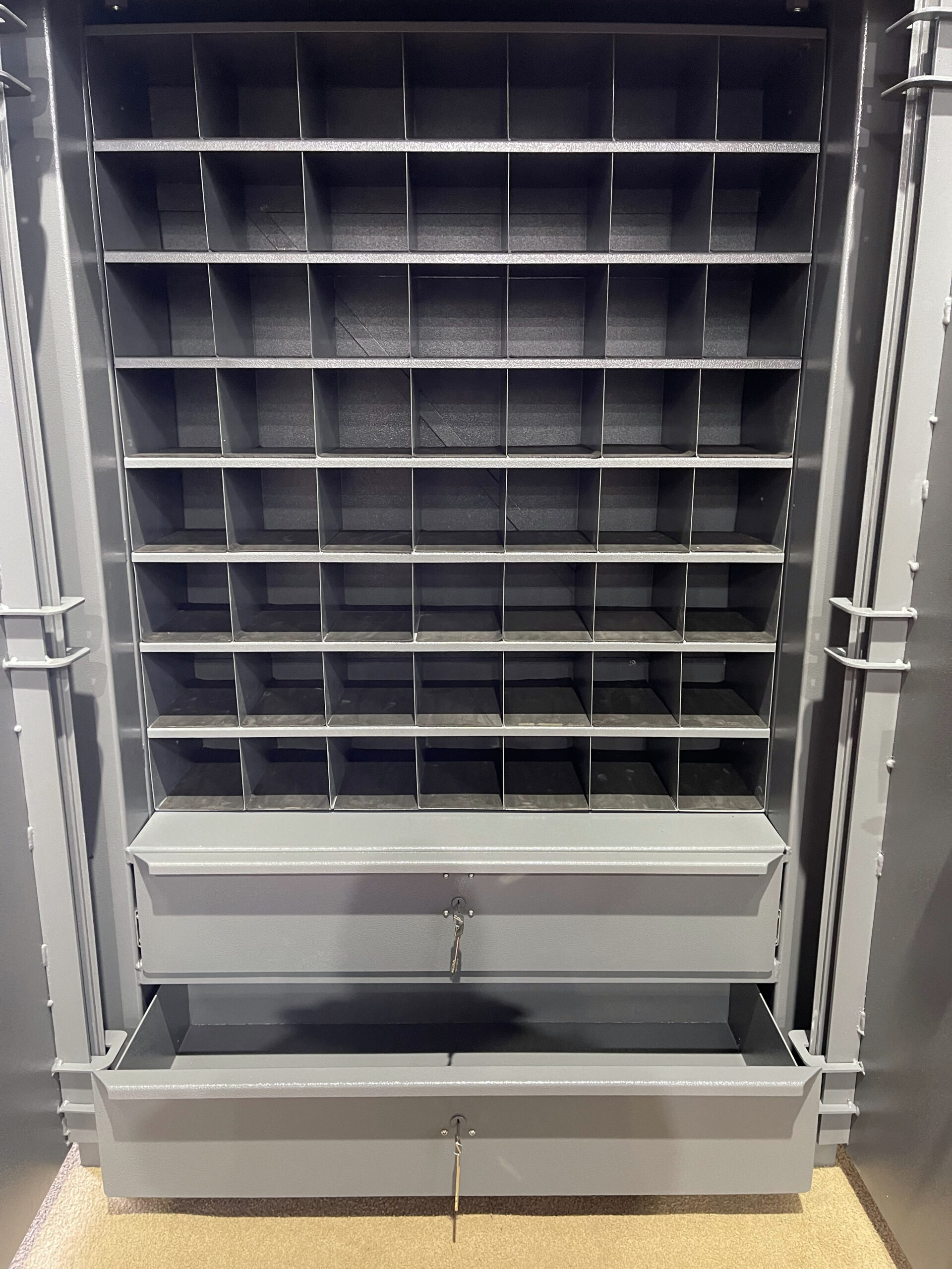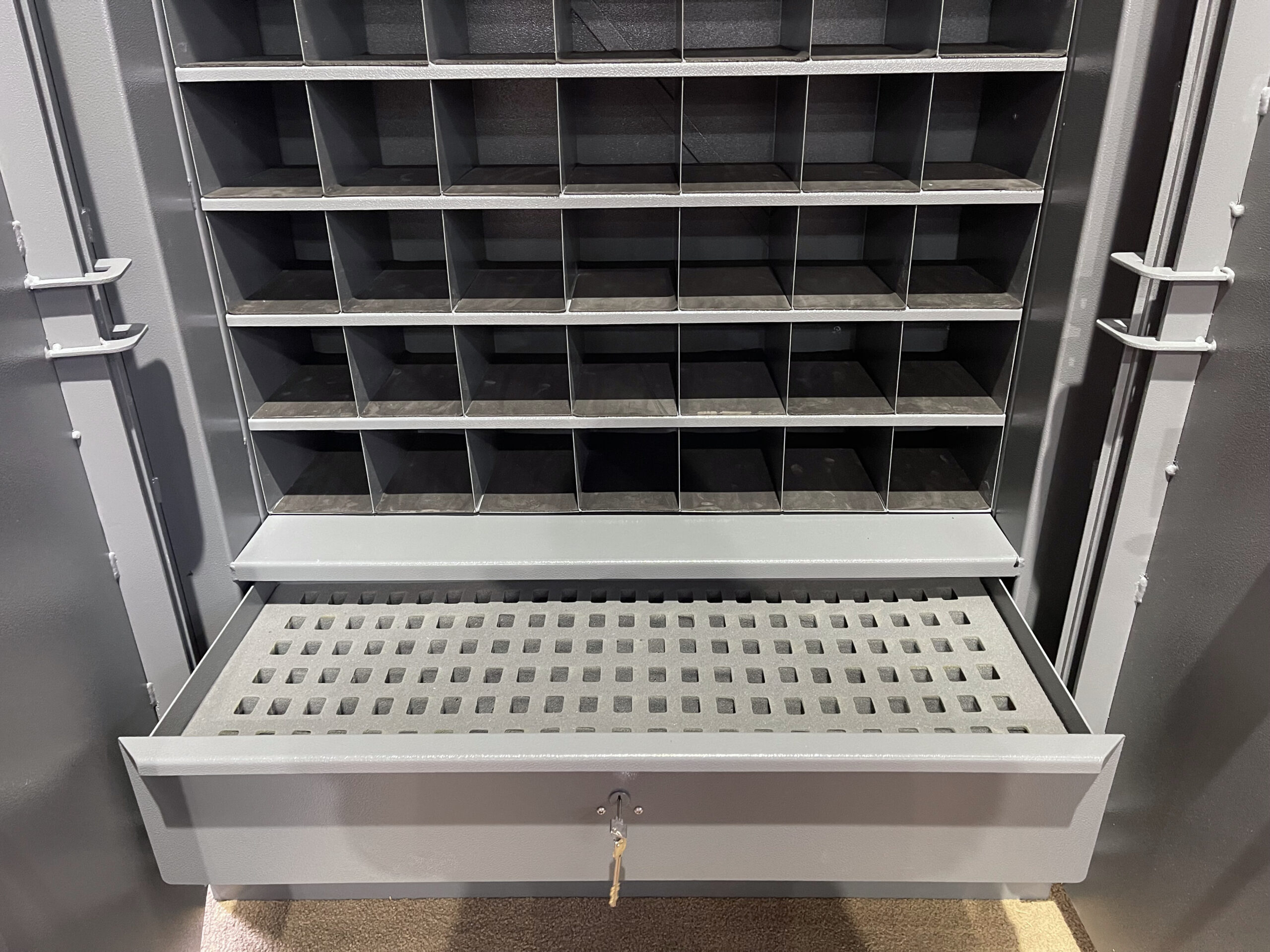 Both compartments are individually keyed, ensuring strict separation and control of weapon and ammunition access.
