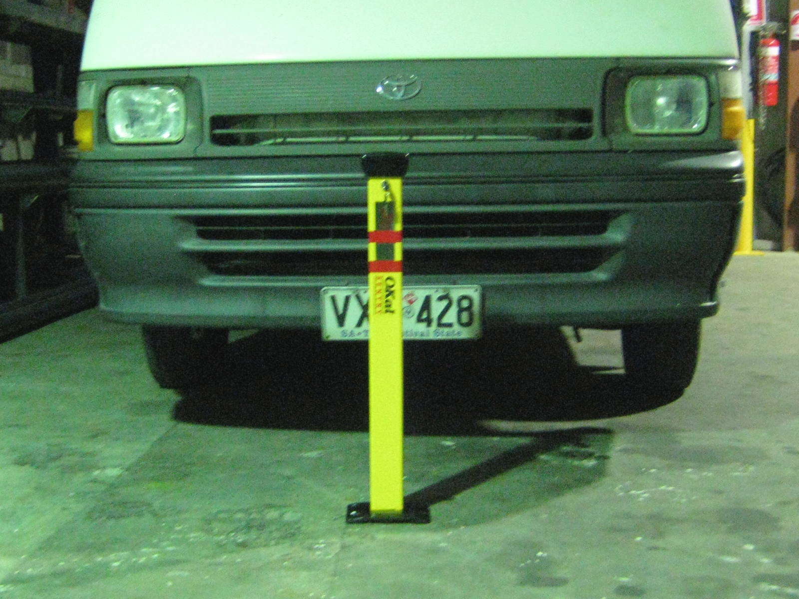 Sentry Parking Lock-In Bollards are constructed from tough square steel posts and are available in a safety gloss yellow powder coated or stainless steel finish. The black base and cap are made from rustproof high tensile aluminum alloy. A heavy-duty steel base model is also available.